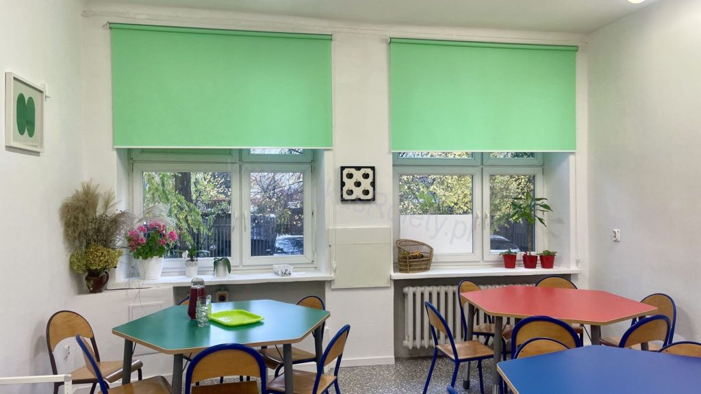 Duże okna w szkole potrzebują dużych rolet okiennych, Oczywiście można było zaproponować tutaj rolety w kasecie na każde okno oddzielną roletę., Może i nawet funkcjonalne ale droższe i mniej estetyczne rozwiązanie przy dużych oknach wieloskrzydłowych, Rolety wolno-wiszące wyposażone w pół-kasetę to sprawdzone i przetestowane już przez wielu uczniów rozwiązanie w Łodzi, Kaseta jest mocowana w wielu punktach dzięki czemu mamy pewność, że roleta dobrze będzie się trzymała podłoża, Zwłaszcza w sytuacjach gdy mamy do czynienia z konstrukcją budynku z lat 60-tych, Często się bowiem zdarza, że budynki szkół czy innych instytucji w Łodzi mają już swoje najlepsze lata za sobą, Ściany nie tu są już najsolidniejsze i wymagają dobrego przytwierdzenia rolety,